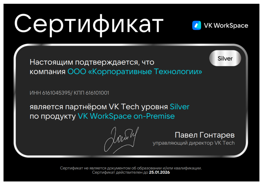 Корптех получил партнерский статус уровня Silver от компании VK Tech.